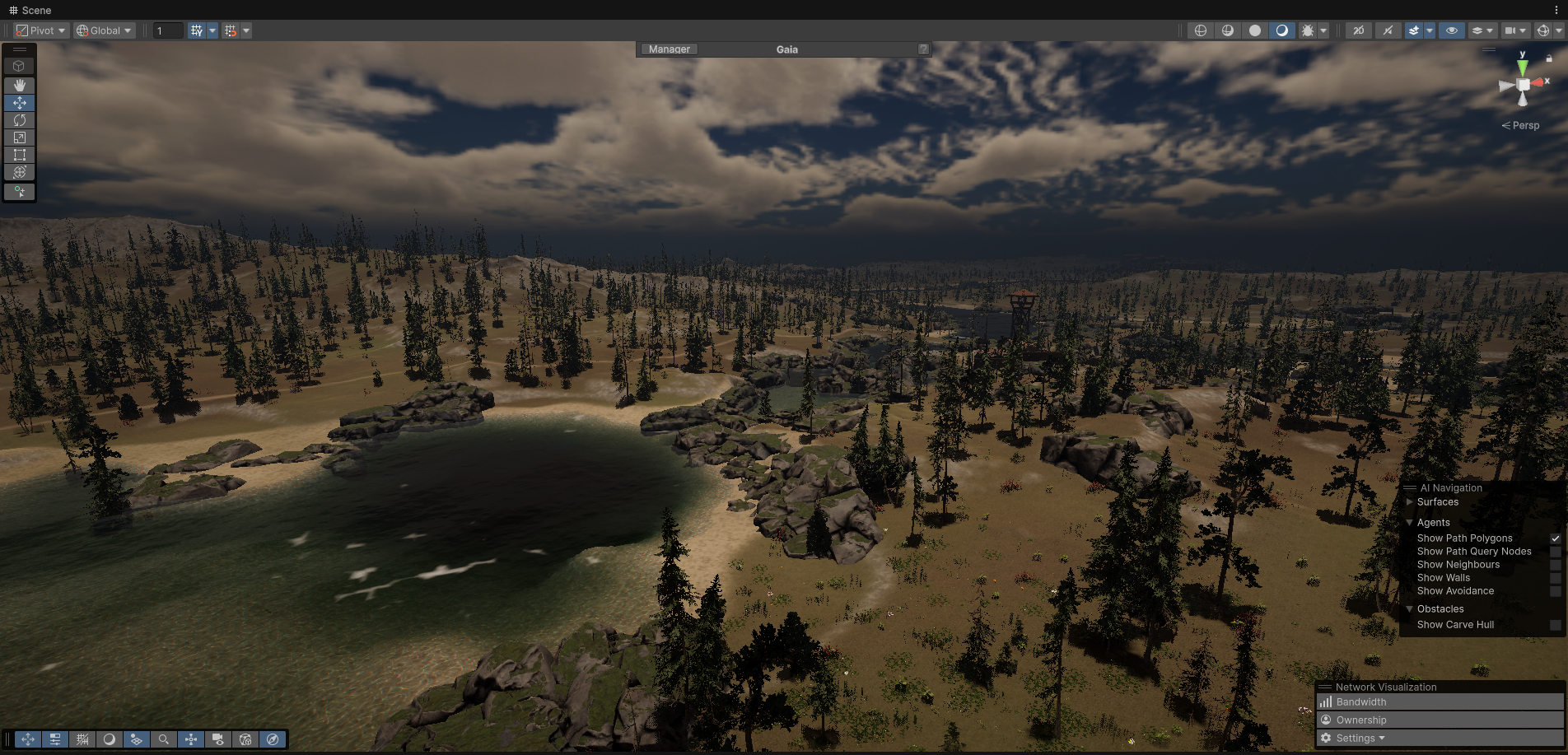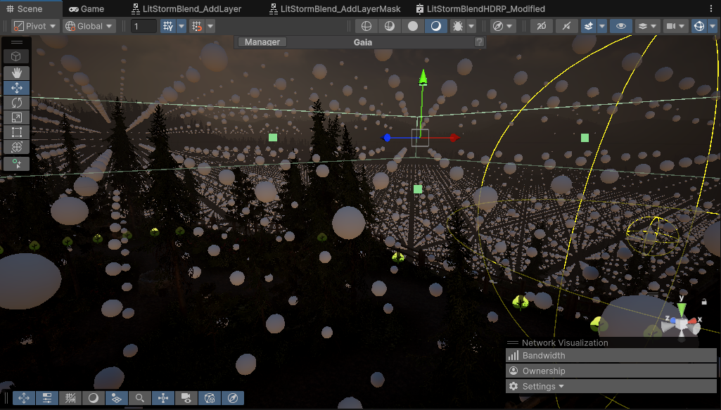 To fix the “ineffective Volumetric Fog,” I used Gaia to identify locations near water sources, at terrain curve valleys, and within forests to procedurally spawn a large number of Local Fog Volumes.